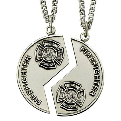Sterling Silver two-piece Fire Fighter Mizpah Medal with Genesis “31:48″ stamped on the back of the two-piece medal. Each half of the medal has a 24″ or 18” Rhodium Steel Finish Silver Plated chain attached.