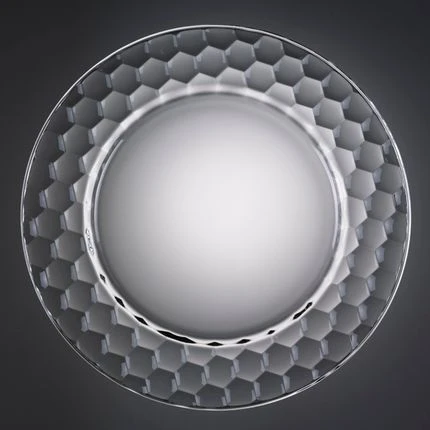 12-1/2″ honeycomb glass charger/serving plate. This beautiful glass plate is rimmed with a honeycomb pattern.Can be used under fine china or also as serving plate for fruits, hors d’oeuvres or a cake. Excellent gift for engagement or wedding. This item is imported and crafted in Italy. Personalized charger plate is dishwasher safe and heat resistant.