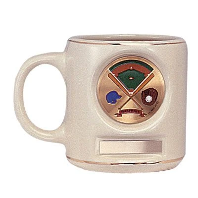 12 ounces white ceramic coffee mug holds takes 2 inch insert and plate.