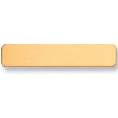 2-1/2 x 1/2 inch satin brass name badge with 2 nail clutch back finding.