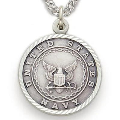 Ladies U.S. Navy Sterling Silver Military Medal, Cross and Philippians 4:13 on back.