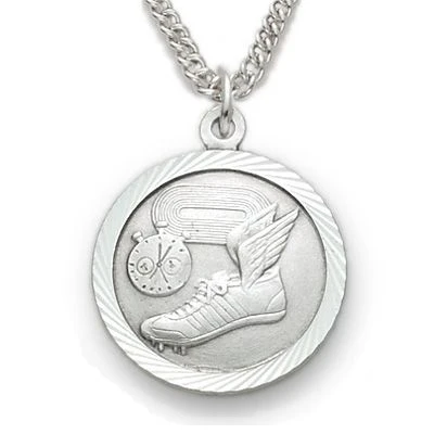 Sterling Silver Track Medal, St. Christopher on Back comes with stainless steel rhodium finish chain.