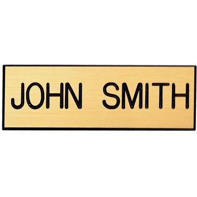 3 x 1 inch gold plastic name badge with clutch back finding.