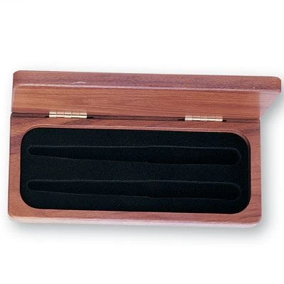 Rosewood finish deluxe pen and pencil box with green velour insert.